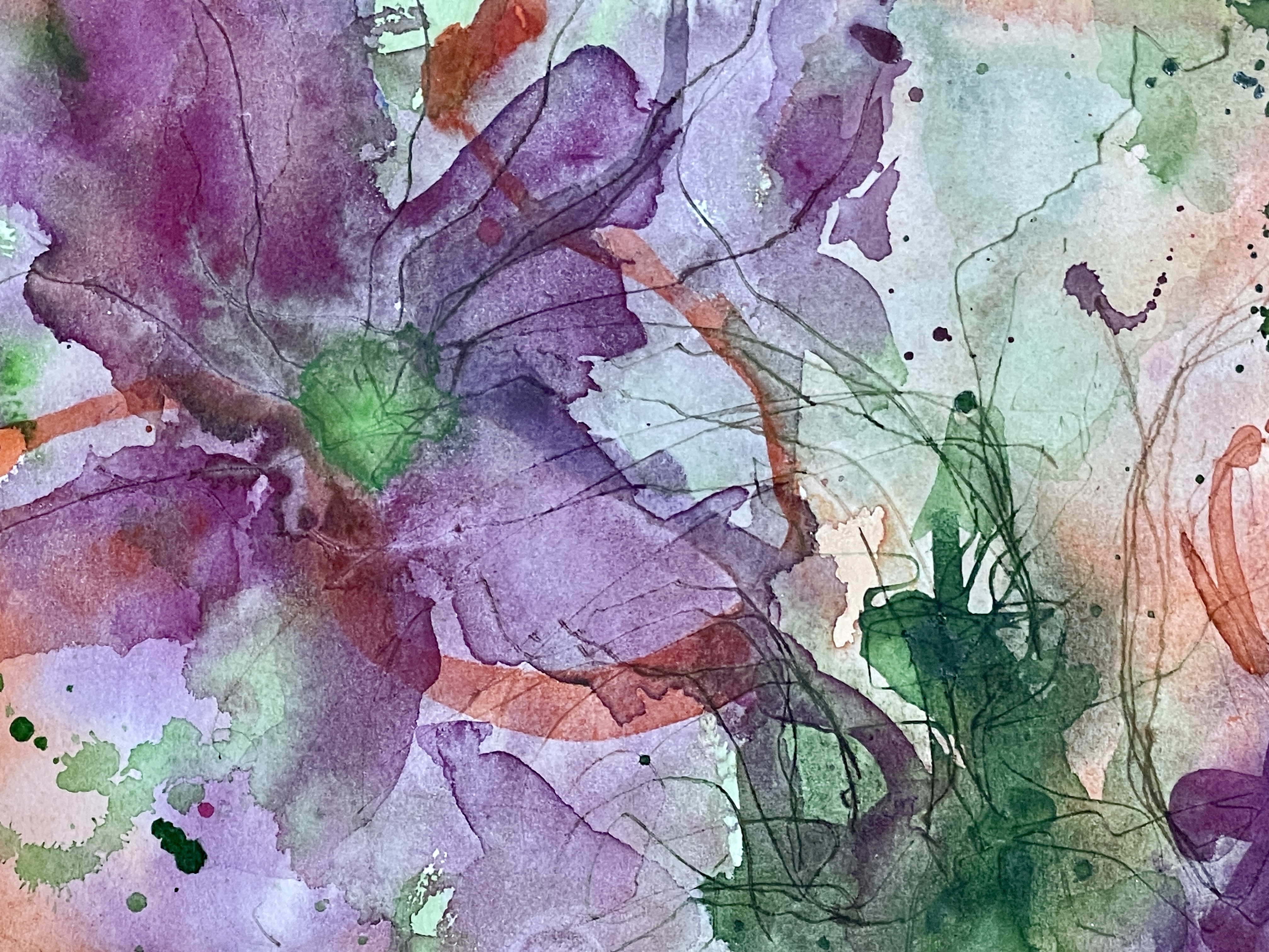 ドローイング ポスターカラー 平面構成 抽象画 花 透明水彩